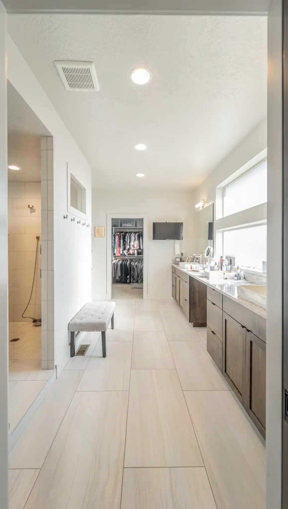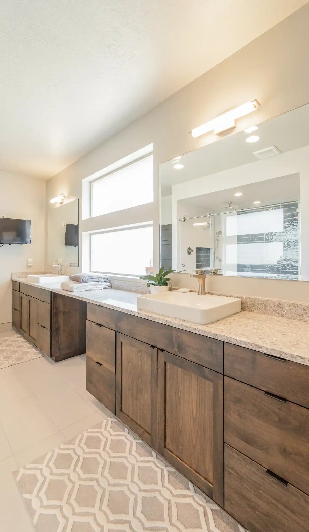 Why did they want the remodel (Client Vision) – Our client wanted to transform a cold, outdated bathroom into a warm, inviting retreat. The original layout, builder-grade fixtures, and uninspired shower didn’t reflect her style or provide the relaxation she envisioned. One of her top priorities was adding a luxurious tub, along with a cozier, more comfortable feel. We incorporated a heated floor system and modernized the design to create a space that’s both functional and serene year-round.